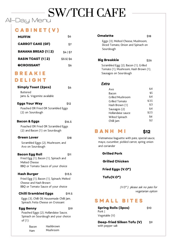 Not just about the food, switch.cafe.diningroom boasts an impressive array of beverages, including organic kombucha and refreshing milkshakes, perfect for complementing your meal. With customer favorites like their flawless bacon and egg muffins alongside traditional Vietnamese iced coffee, this café is more than just a meal; it's a community hub where flavor and comfort converge.